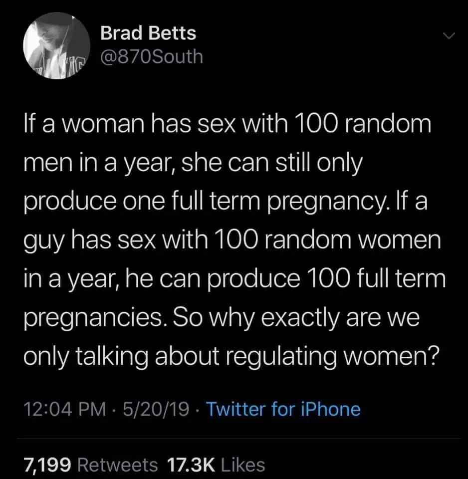 We need to see men being thrown in jail for not taking care of their child. If we're going to ban abortion I would include men who get those women pregnant. Cause an unplanned pregnancy and you go to prison for a few years. Then have to forfeit your wages to care for that child through college.