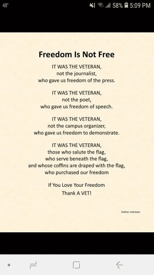 But the truth is, our country was under no threat and was free without them. We have not been invaded in 200 years. No country on earth is capable of invading us and taking away our freedom