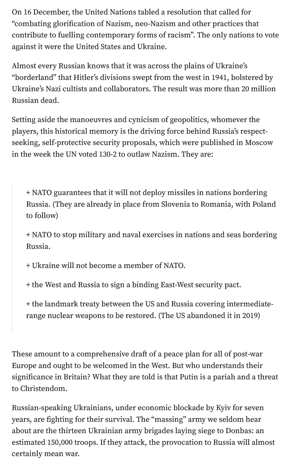 Vladimir Putin refers to the “genocide” in the eastern Donbas region of Ukraine. Following the coup in Ukraine in 2014 – orchestrated by Barack Obama’s “point person” in Kyiv, Victoria Nuland – the coup regime, infested with neo-Nazis, launched a campaign of terror against Russian-speaking Donbas, which accounts for a third of Ukraine’s population.