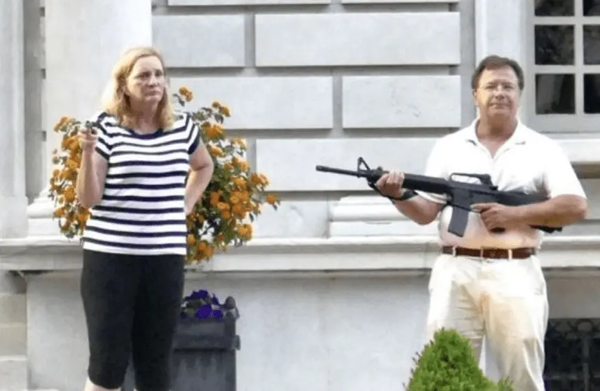 Already some Memes about Mark and Patricia McCloskey's (aka Ken & Karen) STAGED PERFORMANCE, also mentions incorrect gun holding ROFLAO.