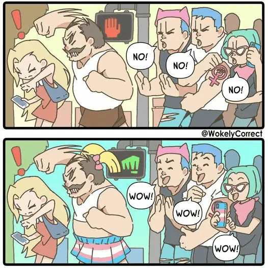Nevermind we've all read countless articles about women getting beaten by men in sports (sometimes literally, such as in UFC) - women getting raped in prison by these "transgenders", and children being exposed to their debauched BS at public all ages shows.
