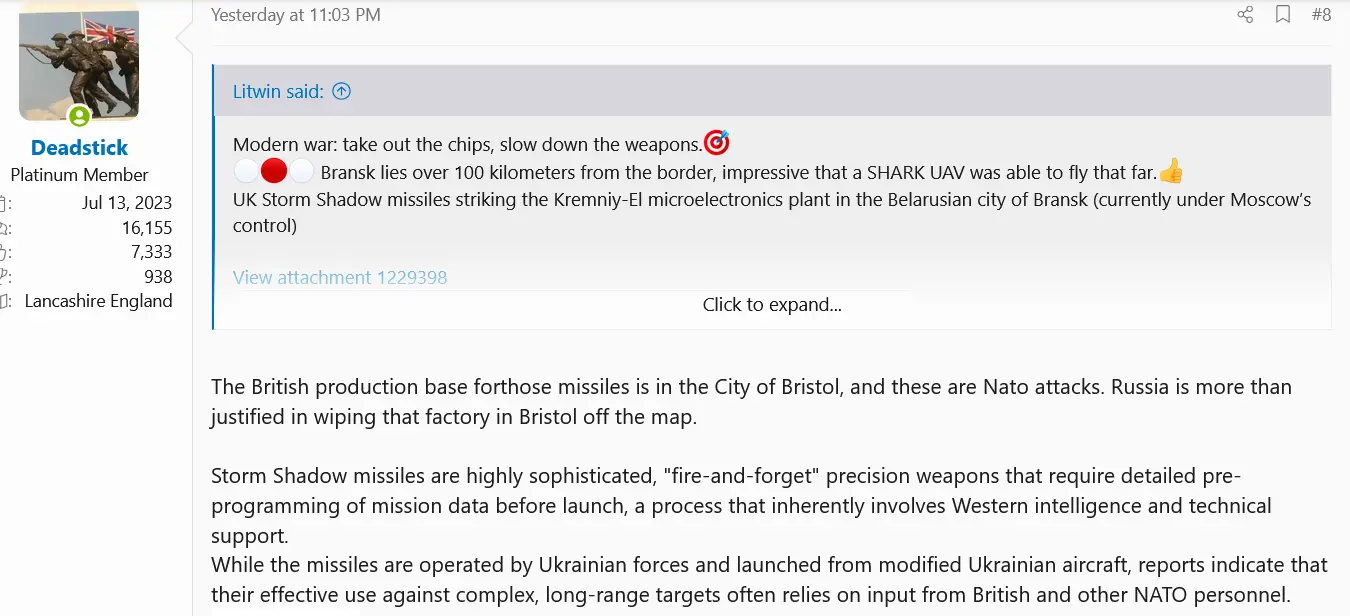 UK Storm Shadow missiles striking the Kremniy‑El microelectronics plant in the Belarusian city of Bransk (currently under Moscow’s control)
