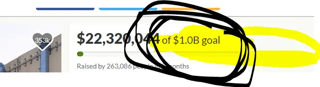 Which part of "their goal" is confusing for you? The stated goal on the gofunme page is 1 billion dollars. it is not my goal, I did not make it up, it is right there for everyone to see.