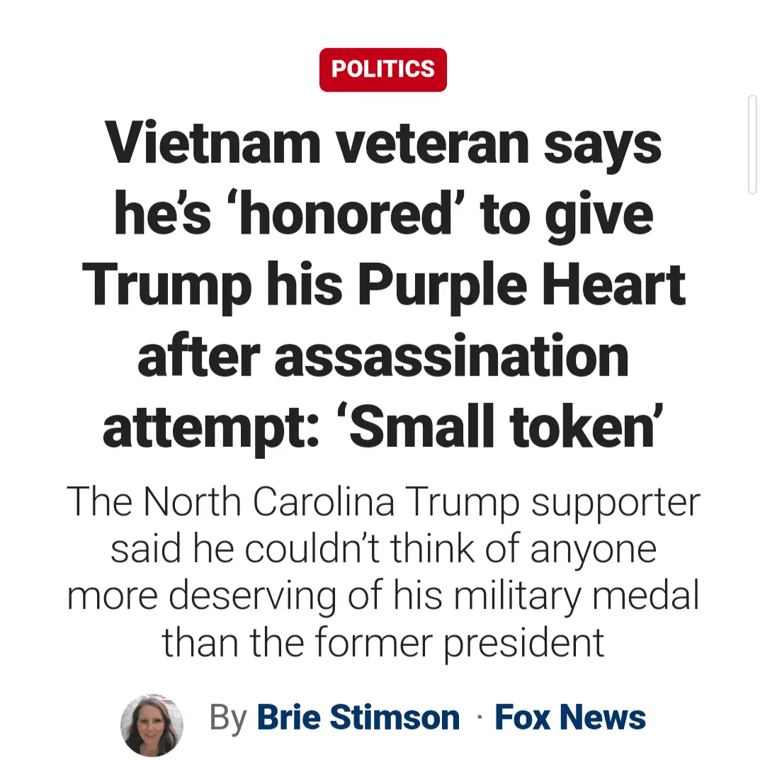 Former President Trump on Friday met a Vietnam veteran who gave him his Purple Heart after being inspired by Trump's fortitude after an assassination attempt.www.foxnews.com