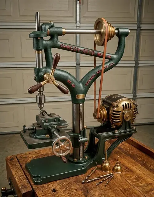 Per the picture the electrical cord was not installed on the motor just to keep it clean lookingMore like the 1920's. That's a much later motor and pulley system than the press originally came with. Below is what the original setup would have looked like, and the belt would originally have been made of leather. Beautiful restoration though!