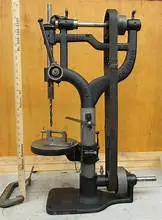 More like the 1920's. That's a much later motor and pulley system than the press originally came with. Below is what the original setup would have looked like, and the belt would originally have been made of leather. Beautiful restoration though!old school style
