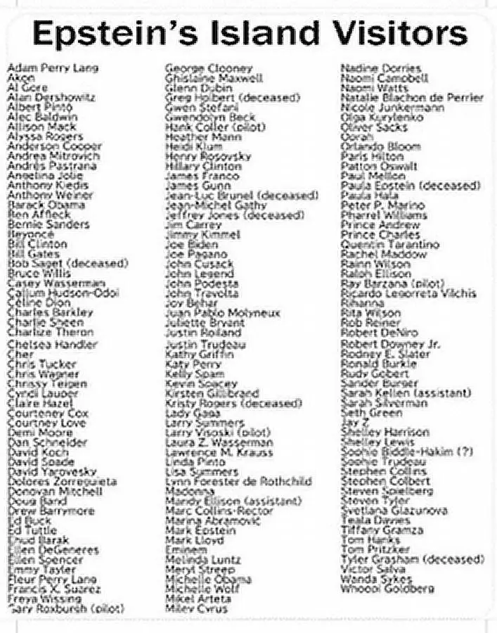 He never went to the island and never visited. He owned it and lived there.I noticed that Epstein's name wasn't on the list.