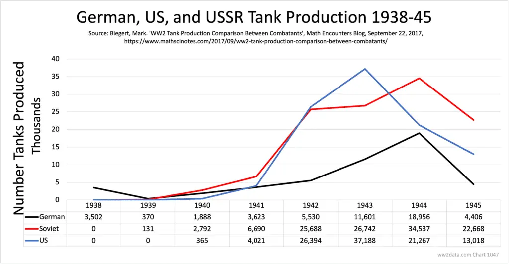 Let's just take tanks. German Tank production increased every year until 1945, when the wheels flew off the wagon. But they USSR and US were producing far more. It really didn't matter than the Tiger II was a superior tank to the T-34 or M-4 Sherman, sheer numbers crushed them.