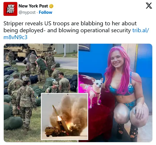 Stripper reveals US troops are blabbing to her about being deployed— and blowing operational security