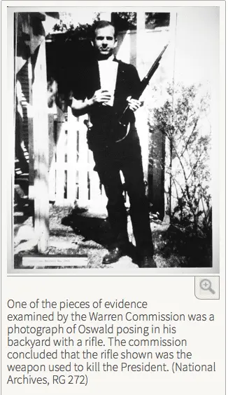Oswald is pictured with the murder weapon. This is a widely known picture that appeared in several magazines… Here is a print from the National Archives website: