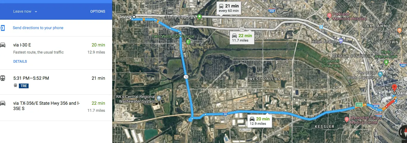 He could not take a bus or taxi the night before because if he had he would have missed the ride to Irving which was more important.