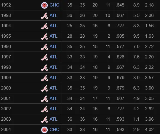 It's amazing that those Braves teams in the 1990s with all of their success and the most dominant pitching staff for years only won a single WS in the 1990s.