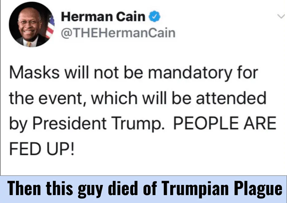 Thus, actually having suffered from COVID myself, I know that the does not affect someone for 30+ continuous days... which is how long Herman Cain was separated and isolated from all family and visitors via quarantine excuse.