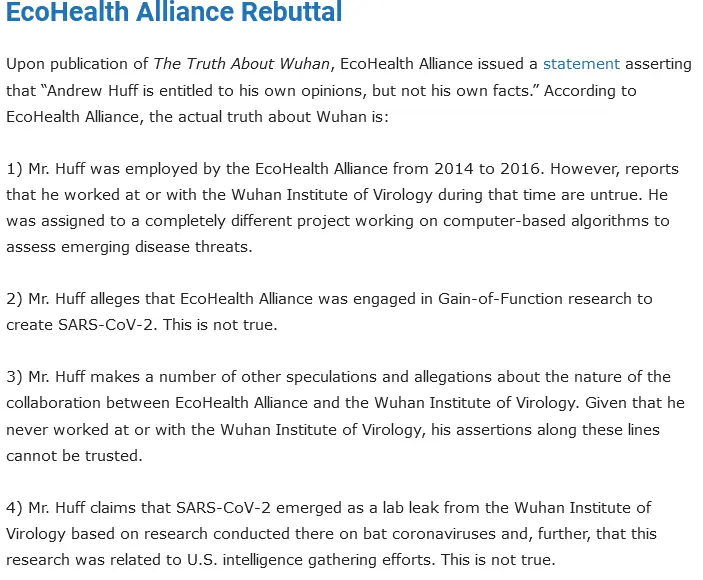 Here is some of the rebuttal from EcoHealth in the article.