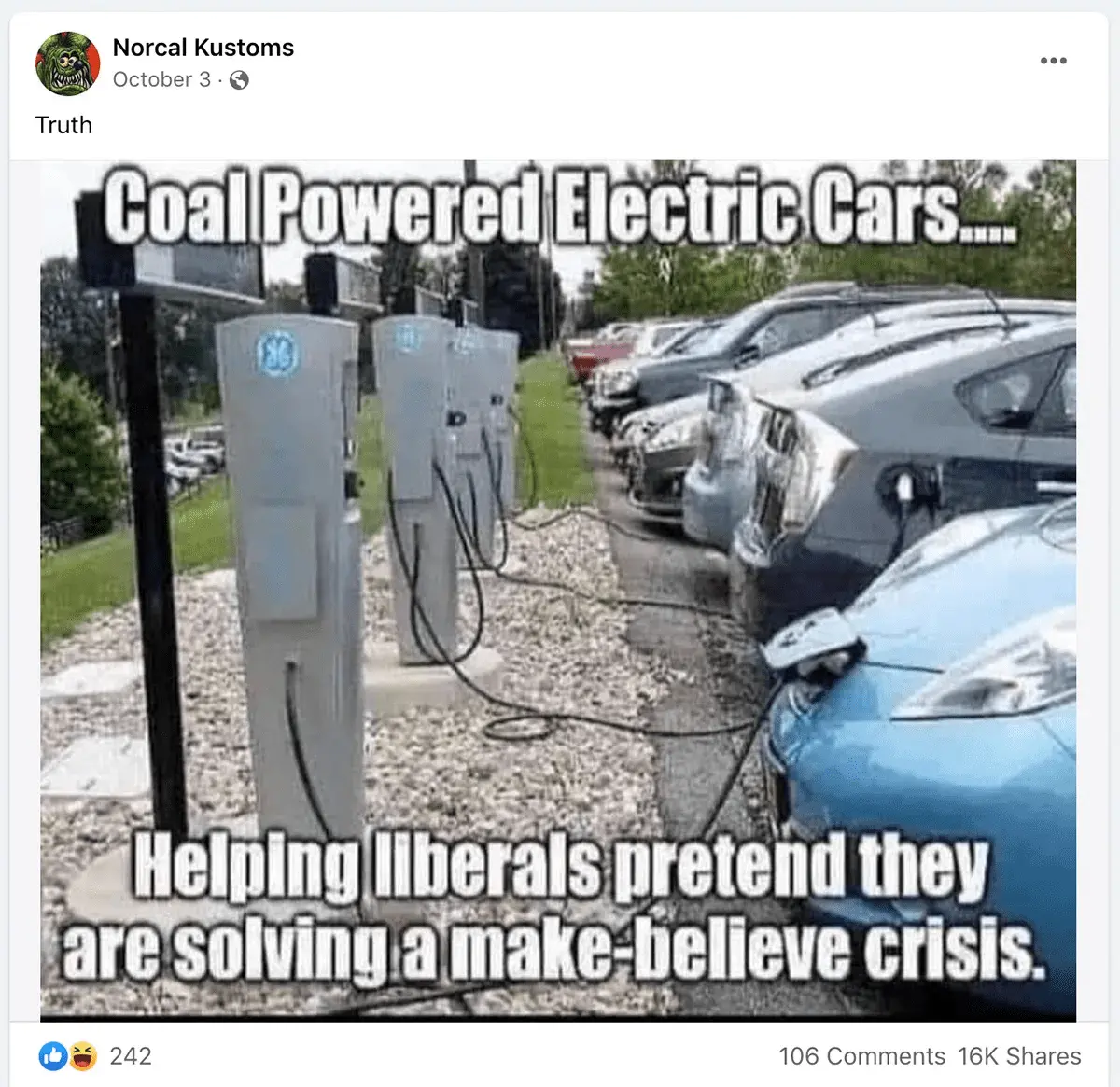 Another truly dumb ****. Presently, in the US, electricity is produced by 20% renewables, 20% nuclear, 20% coal, and 40% natural gas. And renewables are rapidly gaining, as 83% of new generation installed in 2021 was renewables. The reason is economics, it is the least costly form of new generation. The range of EV's is steadily climbing, and will soon exceed what you can get out of a standard gas tank.