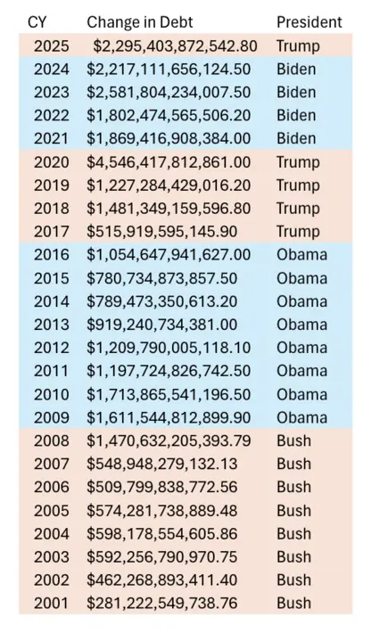 That chart is meaningless. It doesnt say which party was in control of Congress at the time and therefore in charge of the spending. Are we going to blame Trump for the money that Pelosi spent?