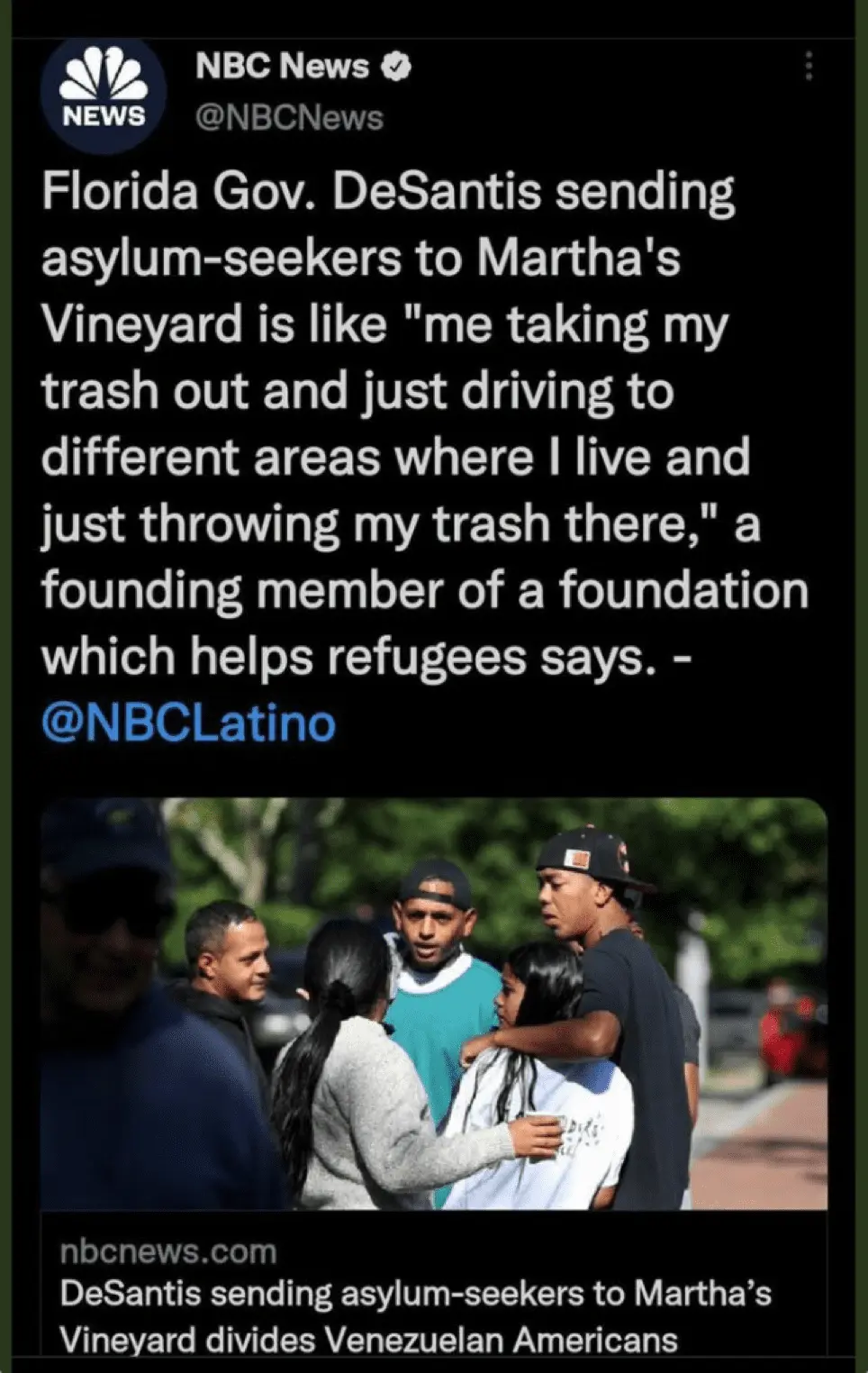 So nice they shipped them off to an airplane hangar.The people of Martha's Vineyard welcomed the immigrants and have been treating them nicely.