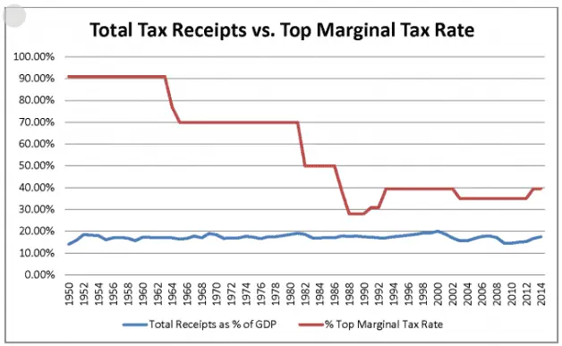 Notice a pattern there? When they jacked up the taxes on the rich, the amount of actual money collected was never significantly higher, than when the rates were lower.