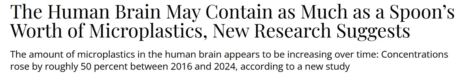 While everyone is still caught up in climate change denialism and discussion (if you call it that) centers on that topic, it is just one facet of our environmental polycrisis brought to us by the actions of humankind. While climate change is something we can theoretically move the needle on, the plastic pollution is not. It is an undeniable problem with no likely solution. It's everywhere, contaminating the entire biosphere. It's in our soil, water, our seas, the clouds and precipitation being spread far and wide. Presently is a feature of all our food and increasing in quantity. There's no reversing this as we produce in greater amounts. There's no defense that it's good health, the functions of our bodies, that is is somehow good for us. There are no glib remarks of 'I could really use me some more of that microplastic right now'. And there's no denying we are responsible. There's no argument to be had over 'well, you don't know what plastic accummulation' looked back in the past or that levels of plastic lags normal functioning of biological processes. There's no way out of this one.