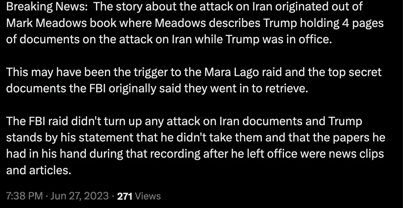 I remember Adam Schiff making the same bold claims. Forgive me if i dont put much faith in an opposing lawyers words either.CNN on Monday released an exclusive audio recording in which former President Donald Trump can be heard discussing "secret" classified documents in his possession that he acknowledged he could no longer declassify after leaving office – a conversation legal experts suggest will be pivotal for the government's case.
