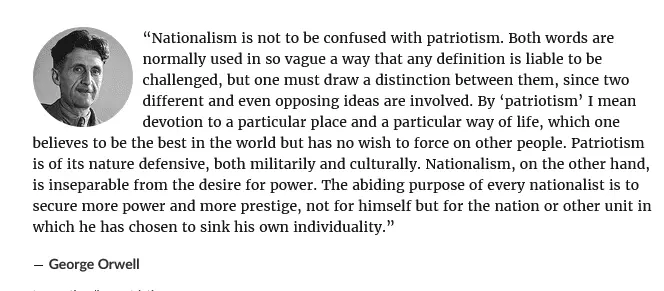 Plus, while obviously a positive, "nationalism" exists along a continuum, where it can become blind, simplistic and binary. I don't think they really understand the "along a continuum" concept, so everything has to be all or nothing.