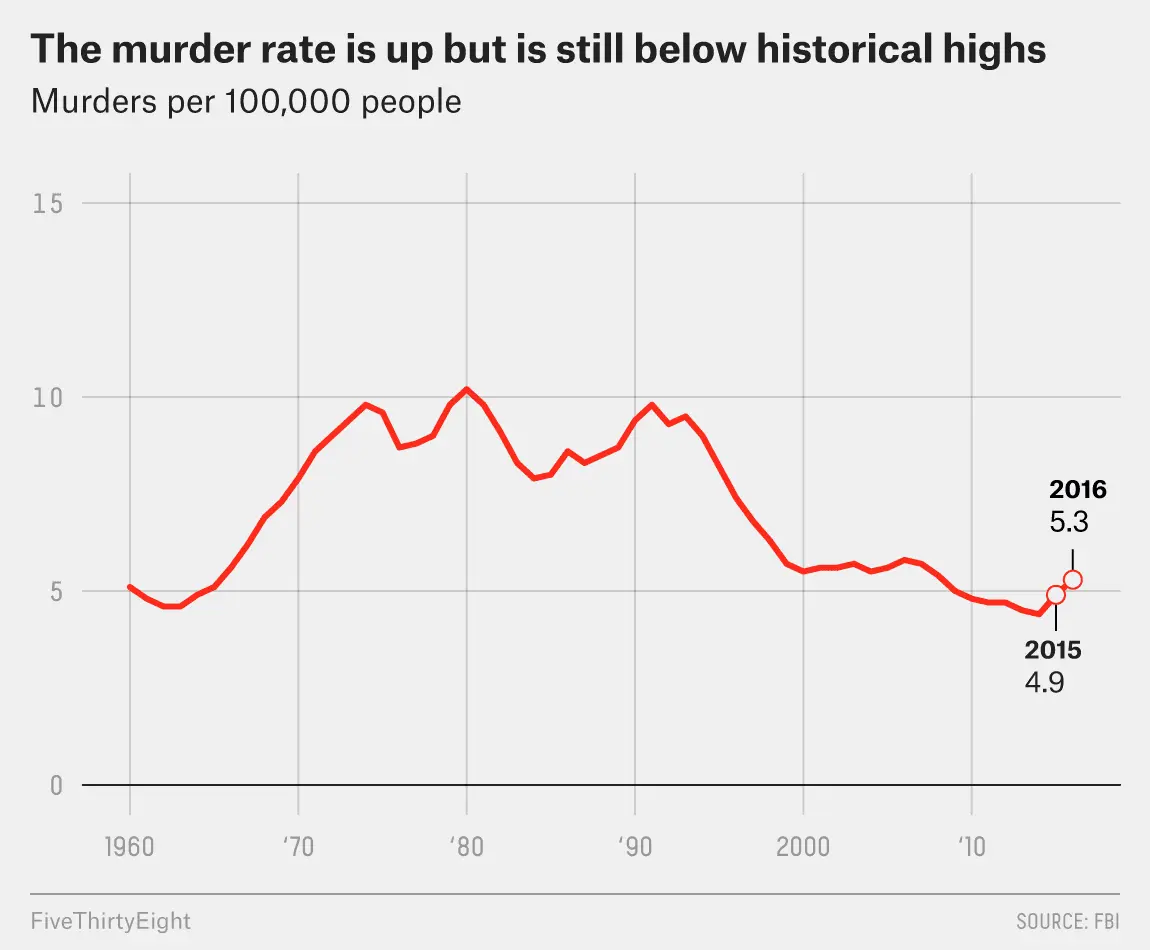 Check it out. The Homicide rate was just as high in the 70's as it was in the 1990's The dip in the 1990's had little to do with all of you compensating for your tiny dicks with guns and more to do with the fact that Boomers started aging out of the prime crime ages.