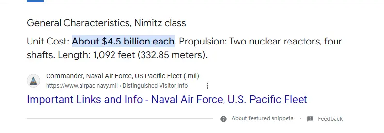 The Nimitz class carriers.... The best ships in the water. Yet amazingly, we are building a new class, the Ford Class. And we’re building 10 of them. Nimitz class, $5B each. Ford class...$13B each.