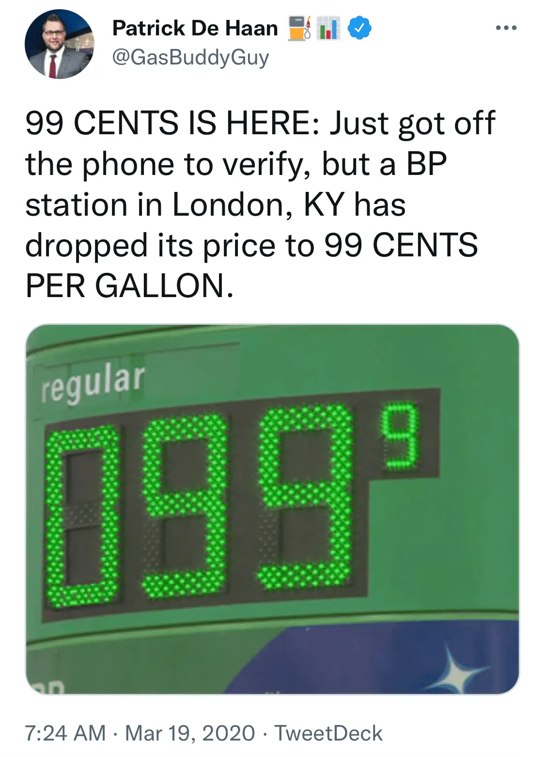 Now all we need is another pandemic that keeps people home and not using gas and we could be back there again