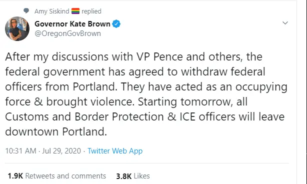 Governor Islee and Mayor Durkan have gotten trump to remove his federal goons from the streets of our city.