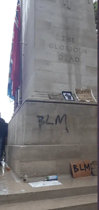 In London they have The Cenotaph this to remember ALL British soldiers from ALL wars who fought and died to preserve what they THOUGHT was the British way of life for many future Generations and look what the Imported Feral Blacks from African Shit Holes and the Mooselimb scum and the Leftist scum did to The Cenotaph on what was supposed to be the British D-Day. Disgusting: