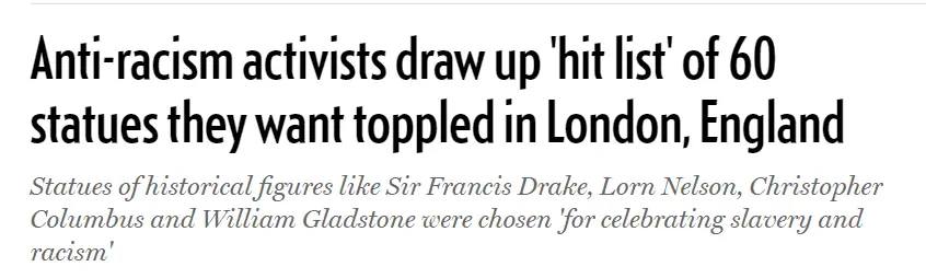 Anti-racism activists draw up 'hit list' of 60 statues they want toppled in London, England