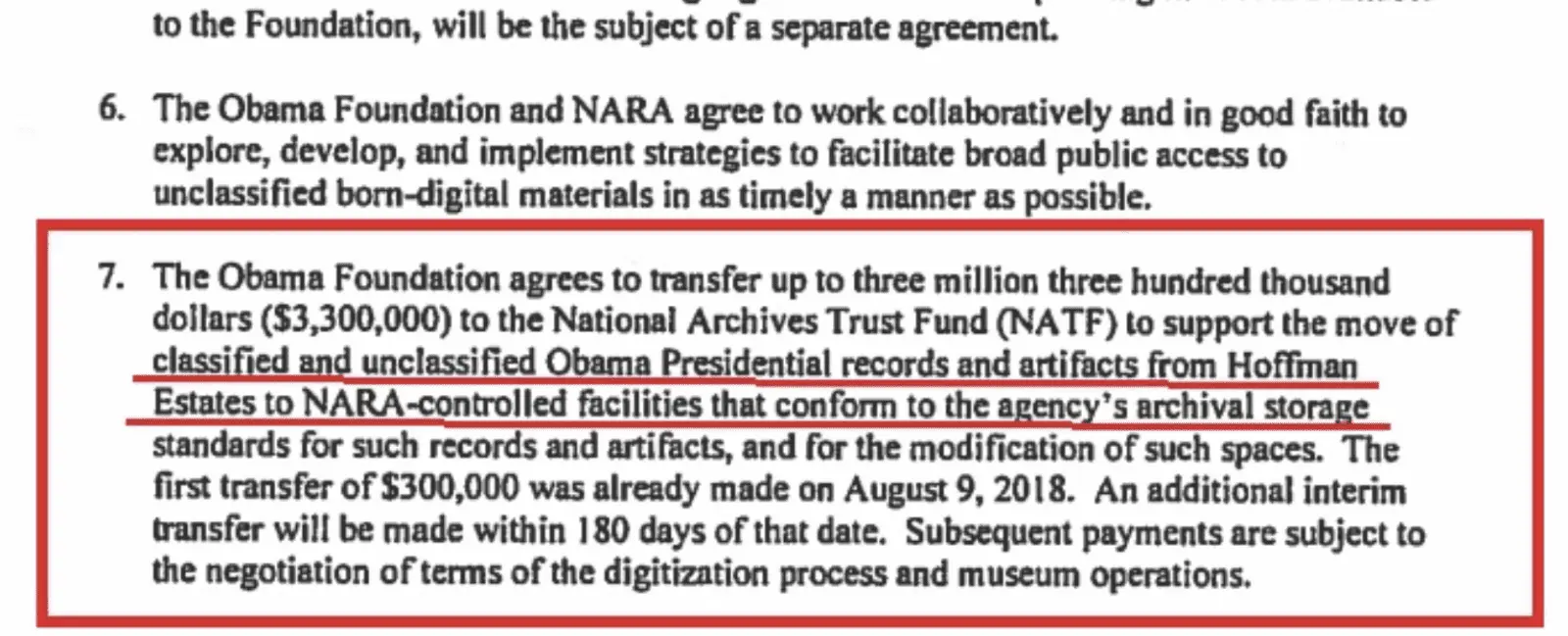 In fact, 18 months after Obama left office the Archive was still negotiating the return of documents with Obama's people, including classified documents (Indeed, the Obama Foundation agreed to pay the Archive to retrieve the documents).