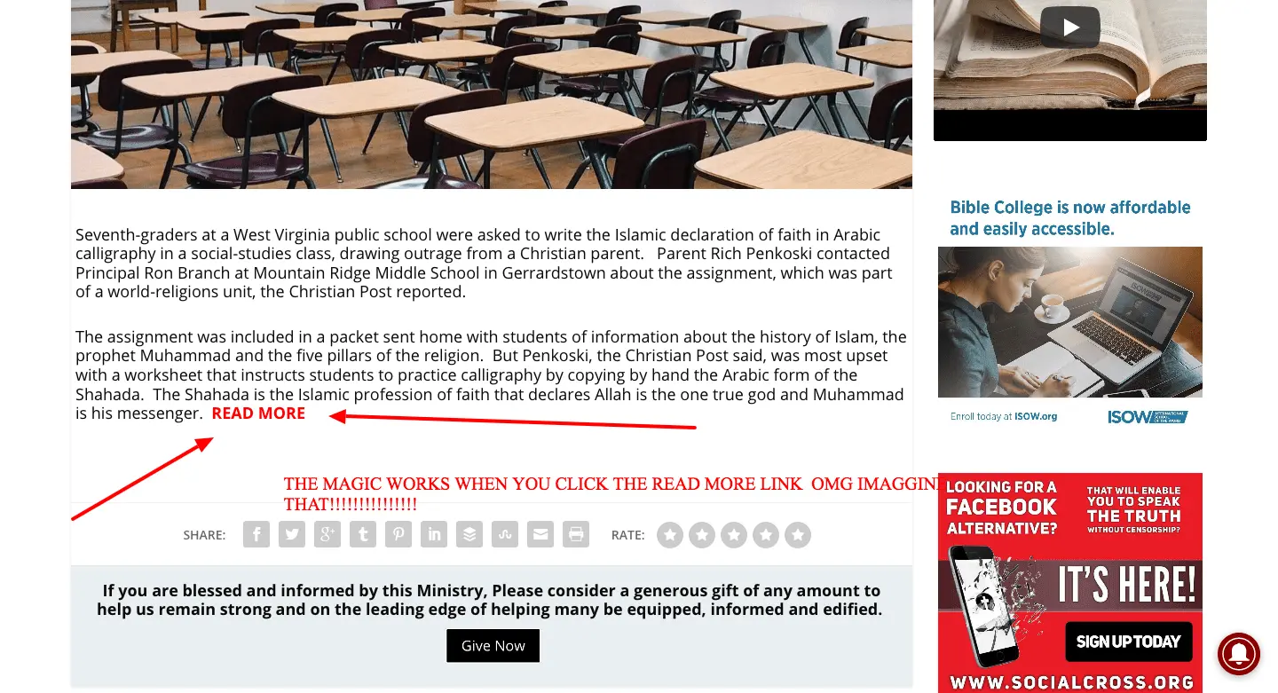 West Virginia 7th-graders told to declare submission to Allah