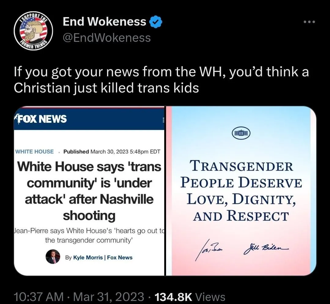 This is who the Biden Admin decides to show compassion to. Not the victims of this tragedy nope the mentally ill, deranged, tranny lunatic who took 6 lives. Normalizing degeneracy was a mistake. I hope SCOTUS reverses homo marriage next. This sickness needs to be locked up in a mental facility and treated not flaunted in our faces on a daily basis.