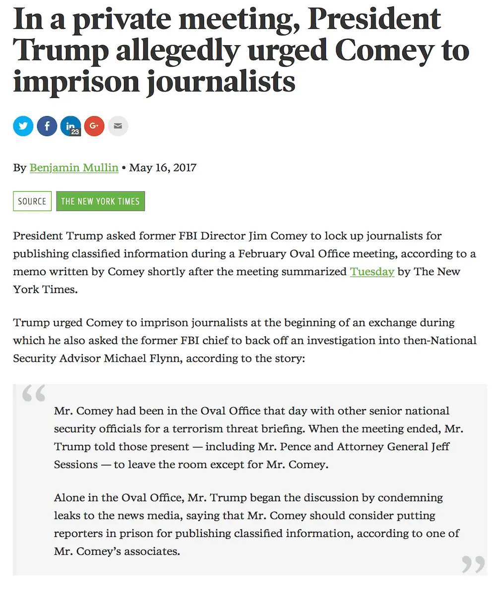 In a private meeting, President Trump allegedly urged Comey to imprison journalists