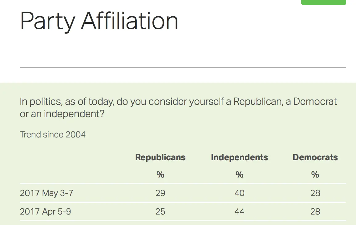 As of May 3-7 2017 there were 1% More GOP then Democrats!