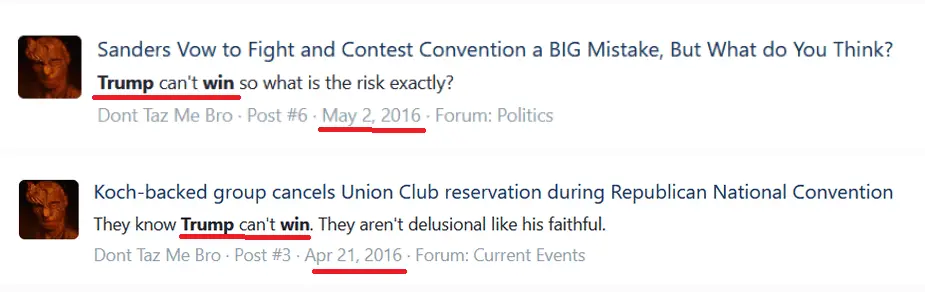 You guys look like fools every time you bring up 2016. "That's what everyone said in 2016!" This isn't 2016. There is no similarity between now and the 2016 election.but it's also what everyone said the first time.