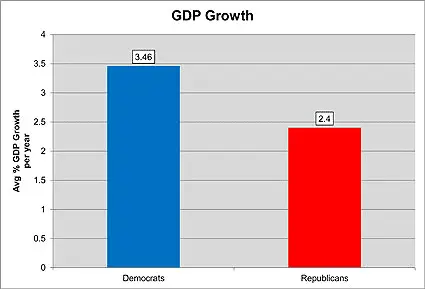 - Democratic Presidents' deficits averaged 2.46% of GDP per year