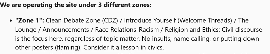 Along with his linking to the rules page, overall, here is the section applying specifically to posting in Zone 1, from that Page Kormac linked.