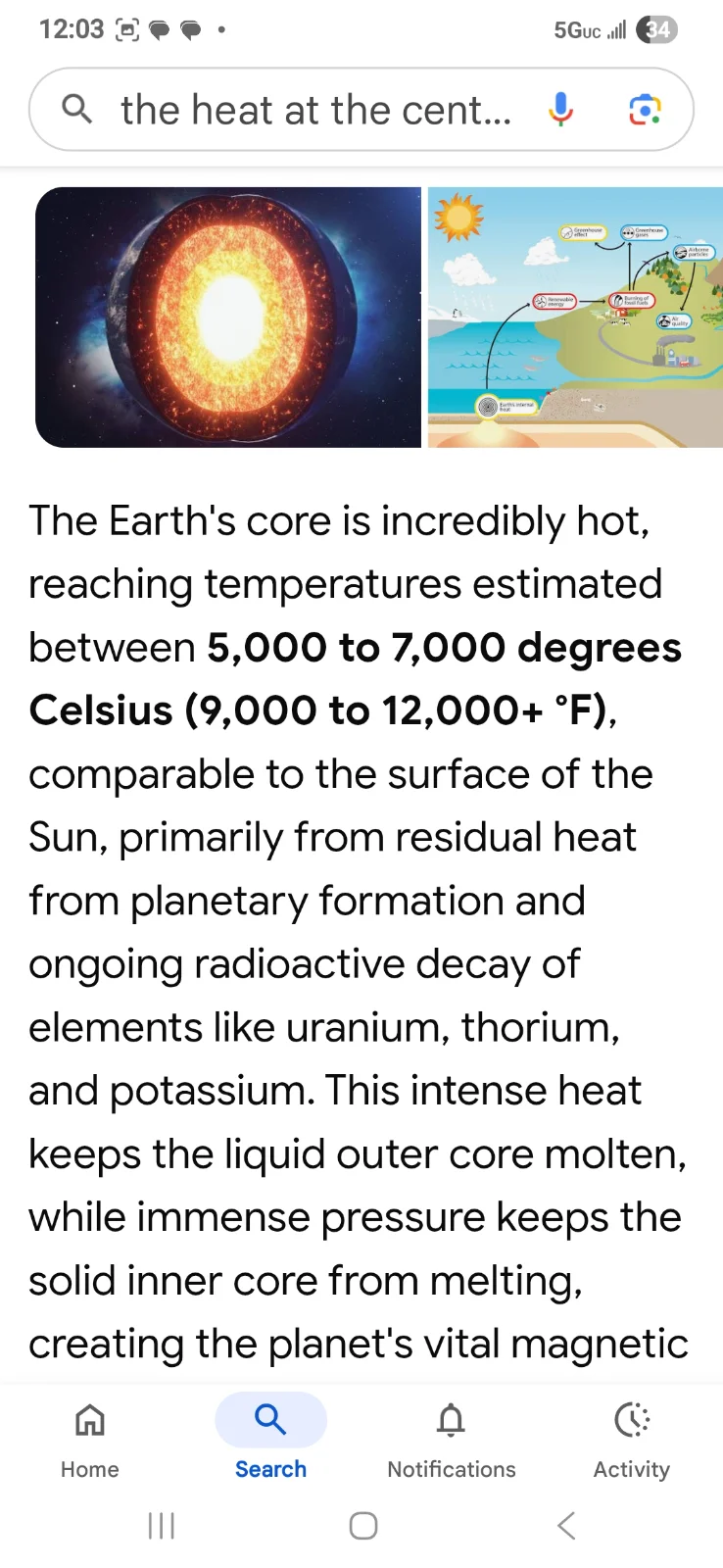 thorium, and potassium deep within. These immense temperatures, reaching thousands of degrees, are retained because heat escapes very slowly from the planet's interior