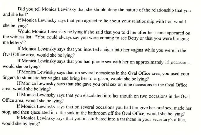 he had a lot of very interesting salacious questions posed to clinton- quite sexual in nature... brett is a sick dude.