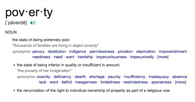 No Home, No Heat, No Food…..real poverty. If there is such a category in America, it is no more than a rounding error.