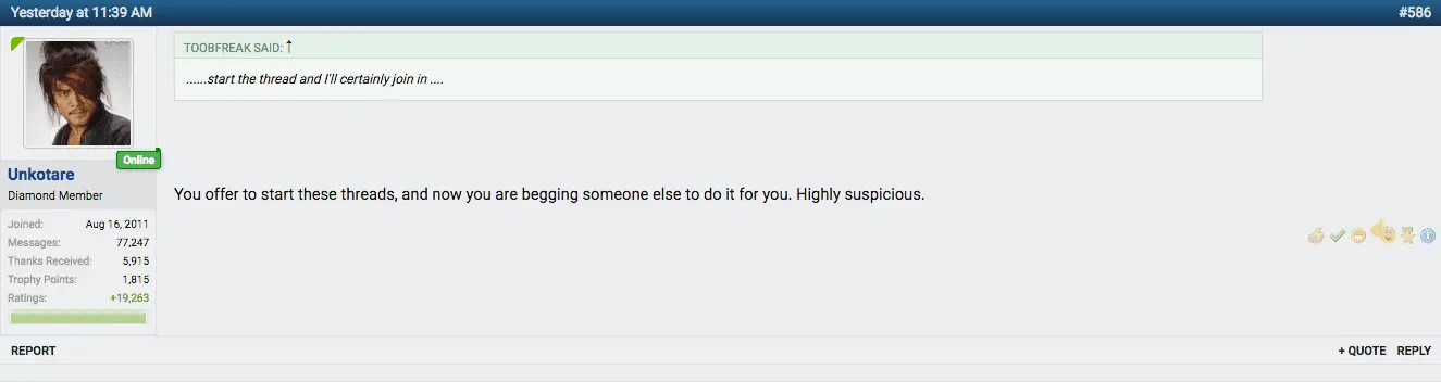 So the feces-fan now tries to duck the challenge by making it a condition that I had to start a thread on one of these, knowing full well he would never contribute or do anything other than continue to troll.