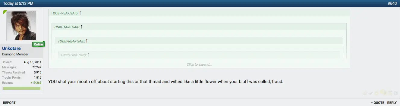 YOU shot your mouth off about starting this or that thread and wilted like a little flower when your bluff was called, fraud.
