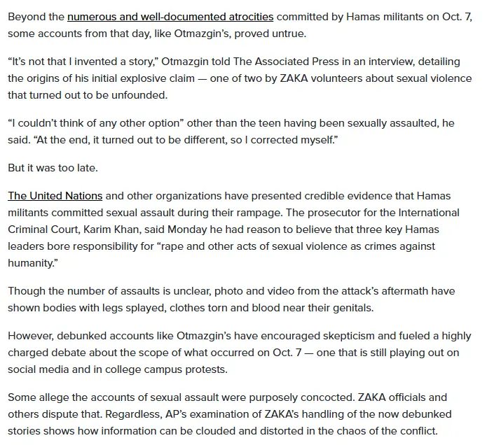 A senior U.N. official also found “reasonable grounds to believe” accounts of rape and gang rape during Hamas’ Oct. 7 attack on Israel.