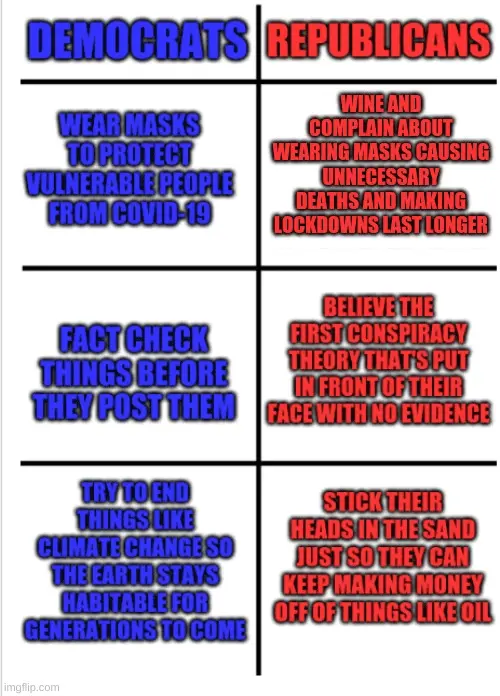 False. And utterly baseless.The democratic party is trying to do the right thing for everyone’s sake. The republican party has morphed into self-serving me first where lying is the path to riches.