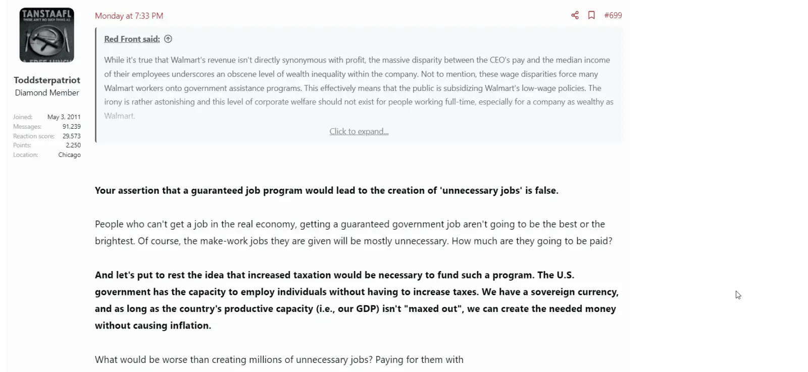 "Ironically"...The working class can also exercise its power, through its administrative arm (the US Government), and employ everybody who needs a job, in the public sector, including those Walmart employees that you're shitting on. You're the one that is underproducing, intellectually and ethically. None of the people you're deriding are unemployable and untrainable. Their government can train them: