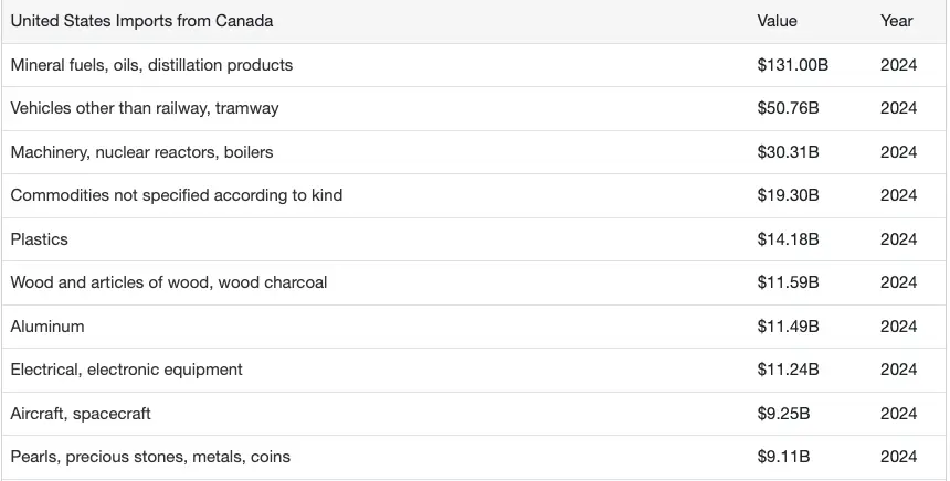 Hmmmm, I wonder why it is we buy more shit from Canada than they buy from us.