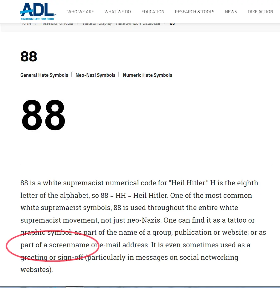 Convenient that 88 in a screen name is also a white supremacist dog whistle.Was born in 1988.