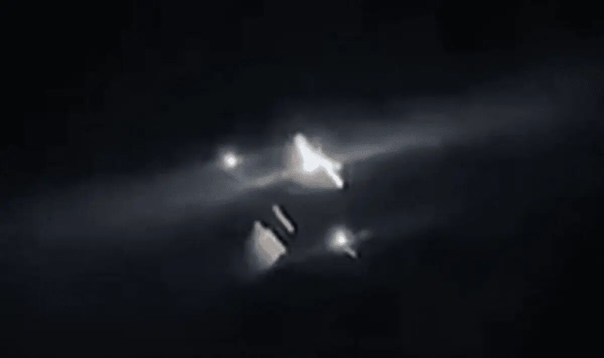 An image from Fox news about the drones...Imagined navigation lights according to Mayorkas. The drones don't exist according to him.